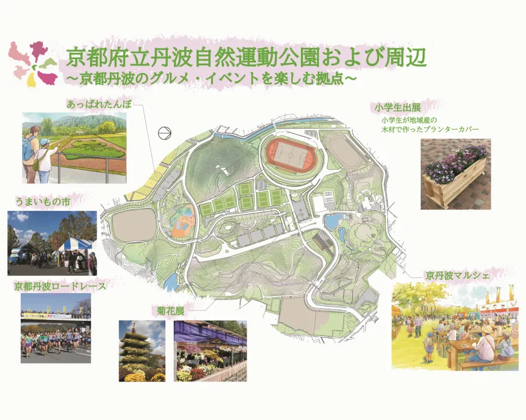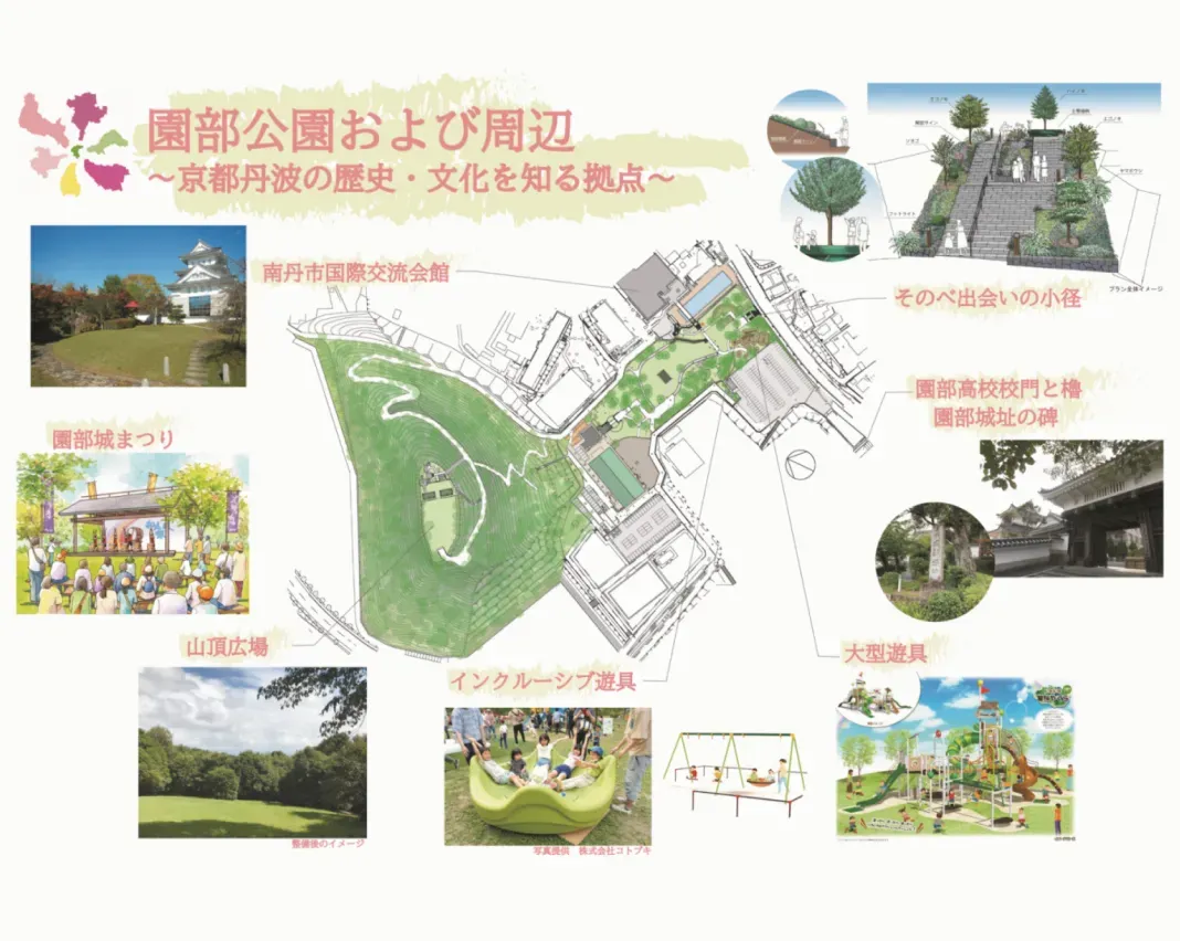 - 南丹市園部海洋センター、南丹市園部公園陸上競技場、園部公園スポーツ広場、多目的運動場、広場、小麦山散策路、南丹市園部女性の館、南丹市立文化博物館、南丹市国際交流会館